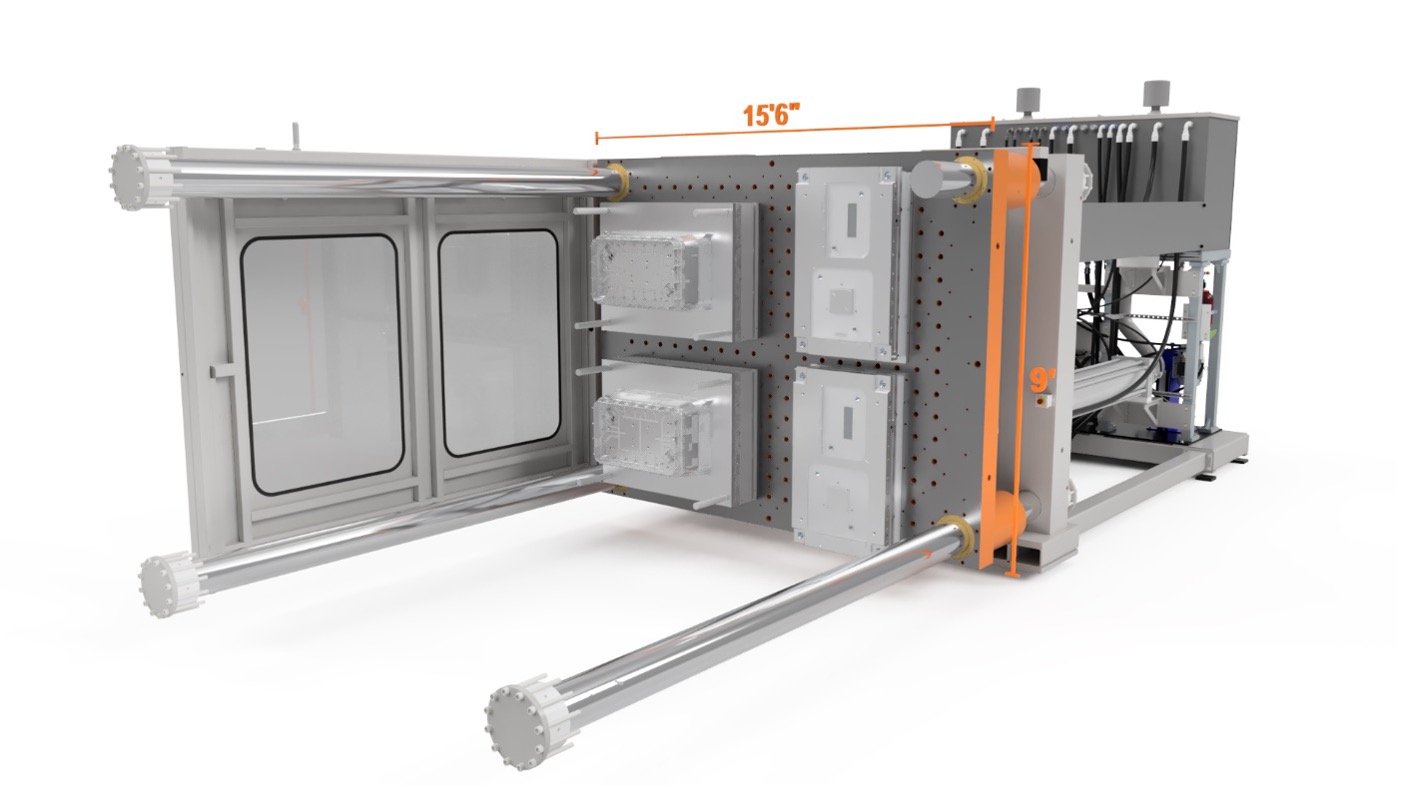Wilmington Machinery offers Seven Low Pressure Machine sizes with configurable single or dual injection.  Utilizing large platens up 15’6” (4.7m) long and 9’0” (2.7m) tall for making one large part or multiple parts, 4-6 molds, in a single cycle, resulting in less floor space, fewer machines, less labor and greater profits!