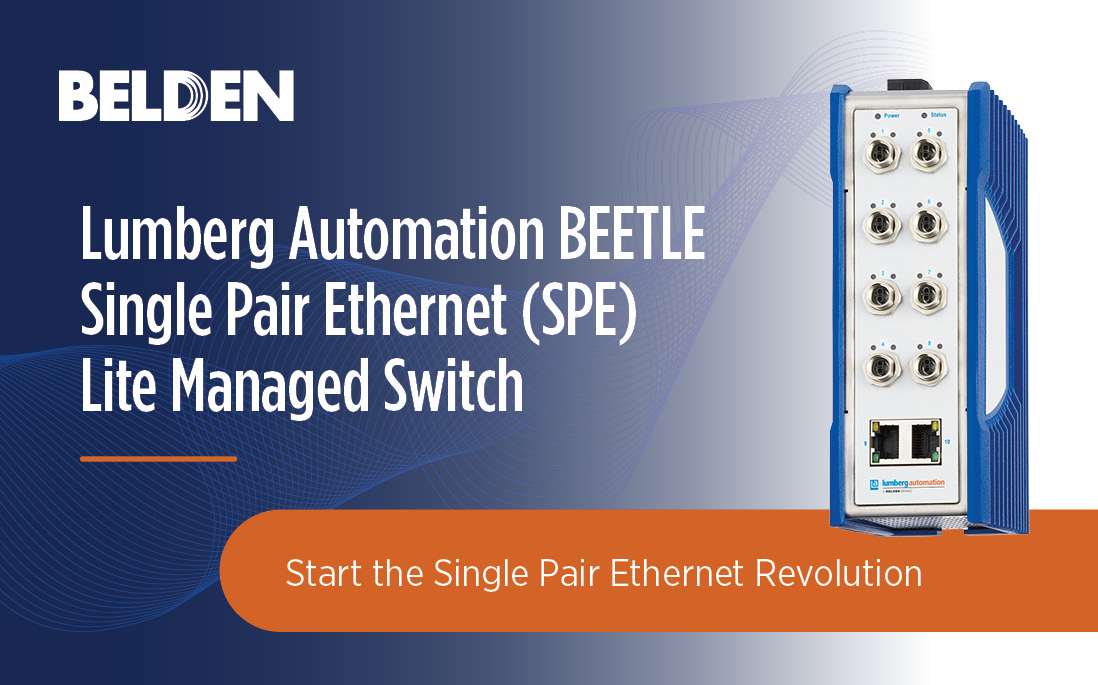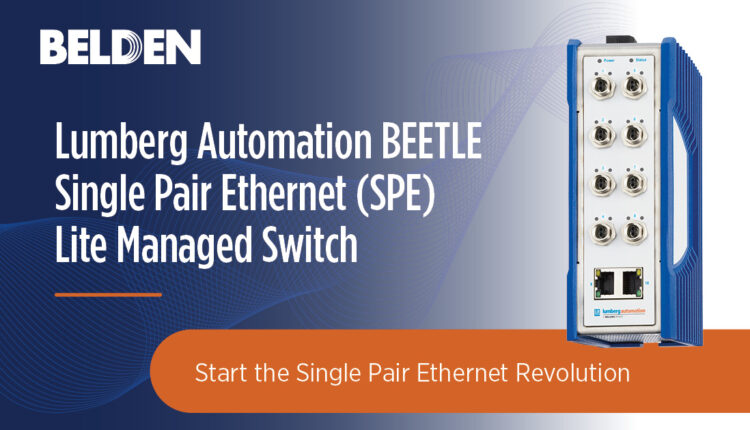 Belden Inc. (NYSE: BDC), a leading global supplier of network infrastructure and digitization solutions, today announced the launch of its BEETLE Single Pair Ethernet (SPE) Lite Managed Switch from Lumberg Automation. An extension of Belden’s Single Pair Ethernet portfolio of connectivity products, the new BEETLE switch empowers organizations to reduce network complexity by deploying thinner, lighter Belden SPE cables that provide connectivity via a single pair of wires rather than the two or four pairs required by standard Ethernet.