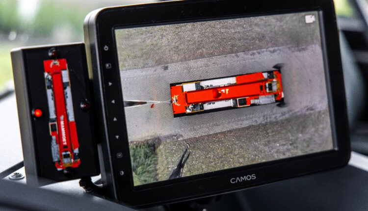 The three-tier system includes Rietveld’s OmniVue 360° camera system. Using a combination of cameras installed on the crane’s chassis, it generates real-time first and third-person images of the vehicle. This gives the driver a full 360-view from both inside and outside the cab, enabling them to see what pedestrians and other road users are seeing.