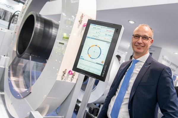 With the CENTERWAVE 6000/1600, they presents a further expansion stage of its proven radar technology for non-contact online measurement of wall thickness, centering, diameter, inner profile and ovality over the entire circumference of plastic pipes at the K 2025. The new model was specially developed for the diameter range from 250 to 1,600 mm and has become an indispensable part of large pipe production. “Thanks to its compact design, the system can be easily integrated into existing extrusion lines and is particularly suitable for production lines in which pipes with diameters of up to 1,600 mm are manufactured,” explains Christian Schalich, Head of Sales – Hose & Tube. In the line, the CENTERWAVE 6000 supports fast centering, seamless quality monitoring and optional automatic control – all in real time. All models of the CENTERWAVE 6000 series enable intuitive operation at the touch of a button. Once switched on, the systems immediately provide continuous, precise measured values – without any presettings, coupling medium or calibration. The basis for this is the automatic determination of the refractive index of the material, which was patented by SIKORA.